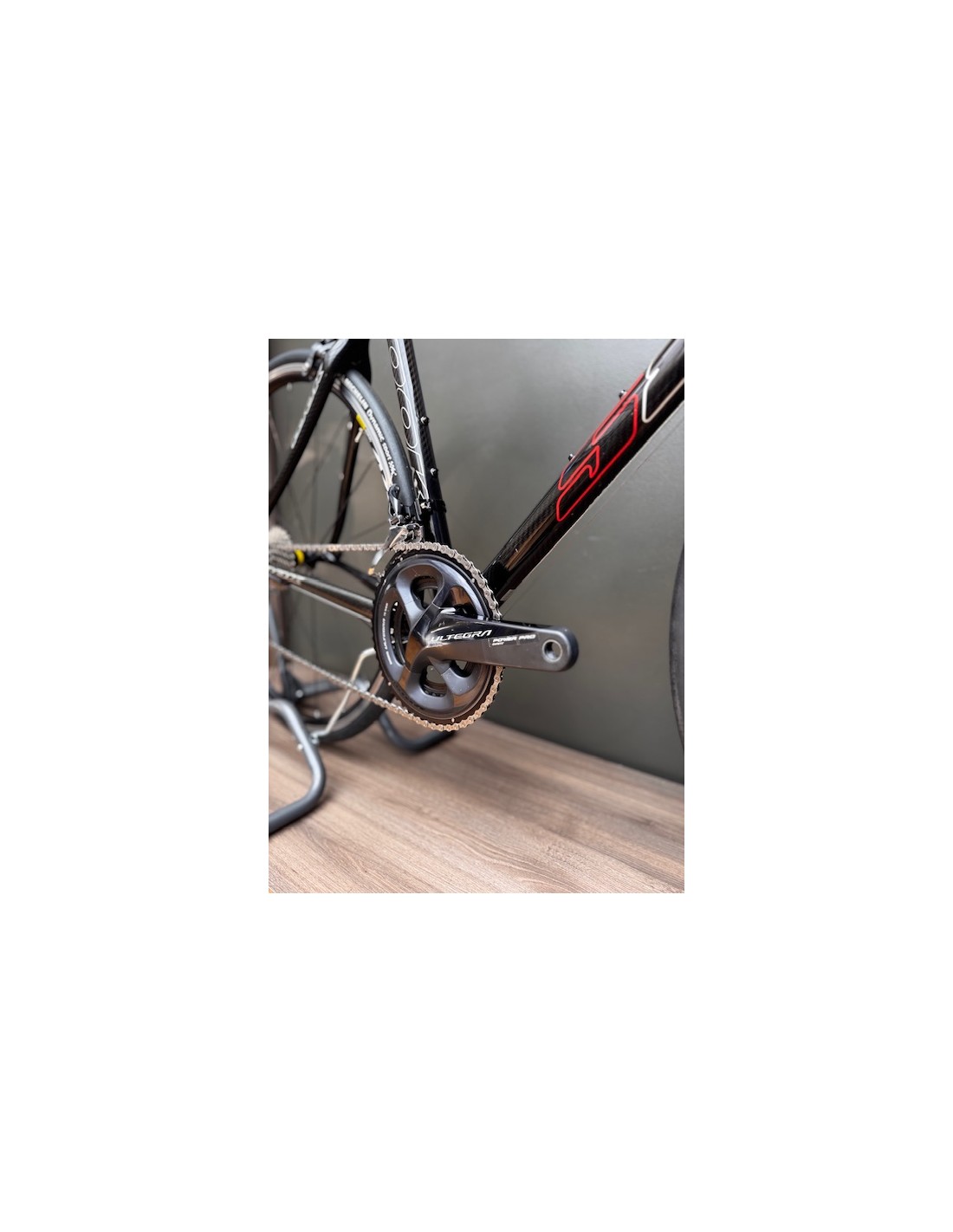 Transmission Shimano Ultegra mécanique 11 vitesses, roues Mavic alu, cadre carbone.