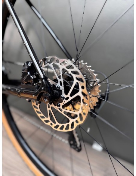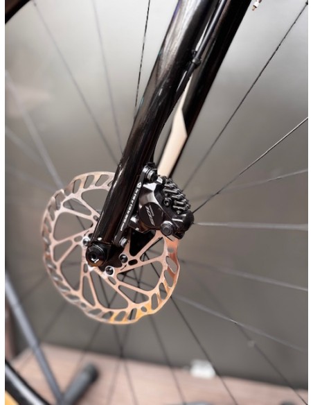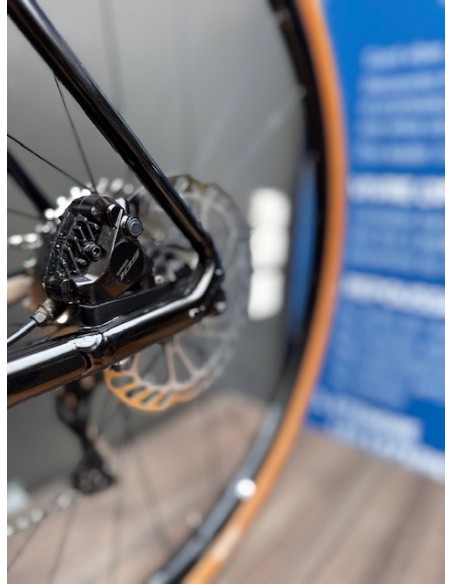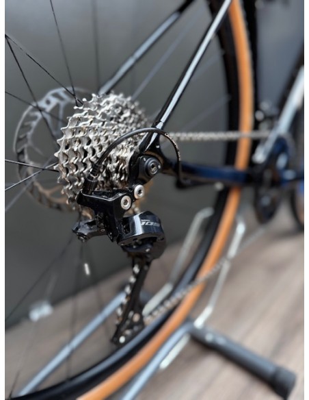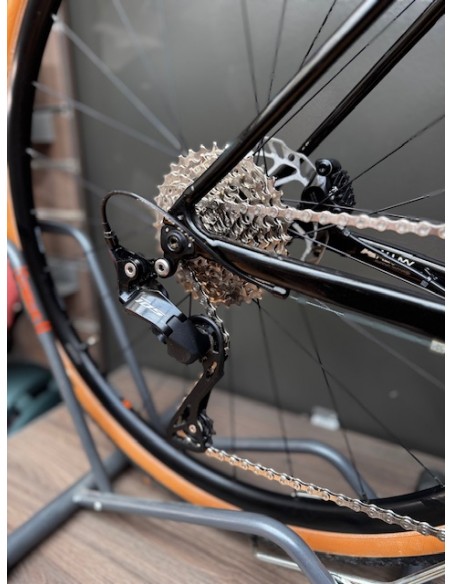 Transmission Shimano 105 mécanique 12 vitesses, cadre et roues aluminium, fourche carbone.